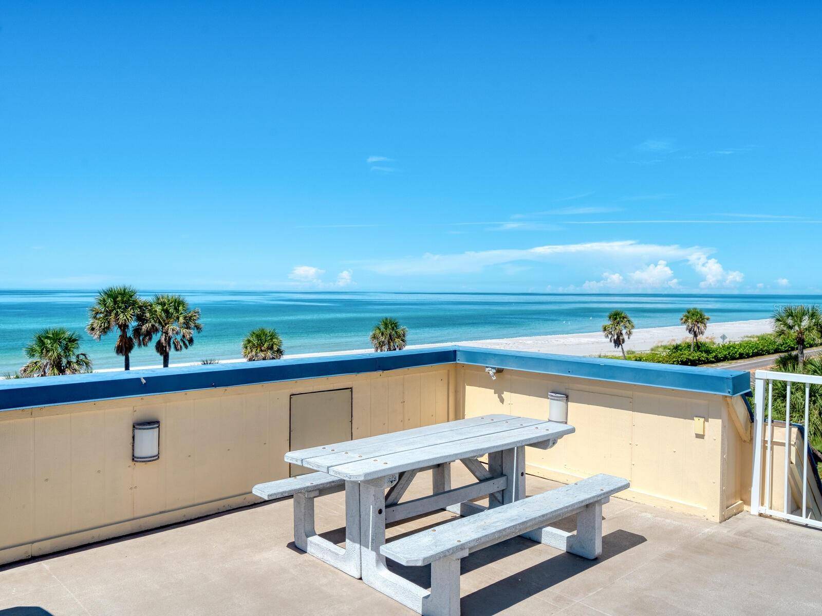 Beach Harbor Club is a beautifully maintained Gulf-to-bay community offering boat slips on the bay and private beach access on the Gulf side. Just bring your bathing suit and flip flops as this two-bedroom and two-bath unit has been beautifully updated to include an all-new bright open kitchen with custom cabinetry, stone counters and high-end appliances, including a Fisher & Paykel fridge, a two-drawer Cafe dishwasher, and a Cafe two-oven, six-burner stove. Flooring throughout was updated with a light blond luxury vinyl plank. Both baths had updates including cabinetry and countertops found in the kitchen. The AC was replaced in 2024. This home also has a sweet view of the Gulf from the outdoor seating area in the front. Beach Harbor Club is an active and amenities-rich community with boat docks, a pool, a gym, private beach access, kayak storage, a ground-level storage closet for beach gear, a beautiful clubhouse and just upstairs from this unit is a wonderful rooftop deck for sunset viewing.